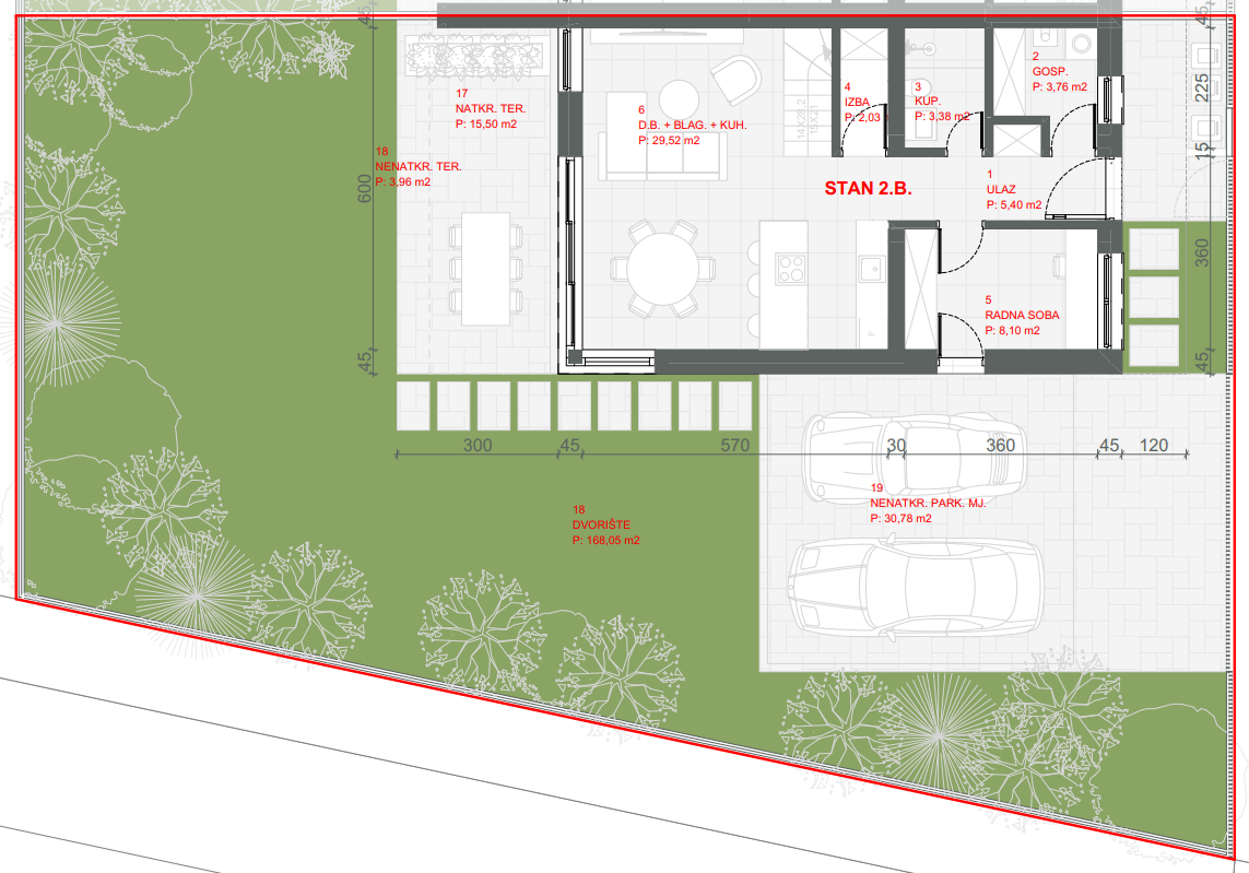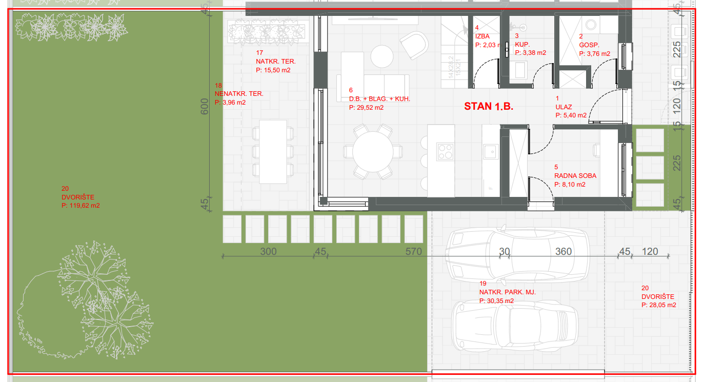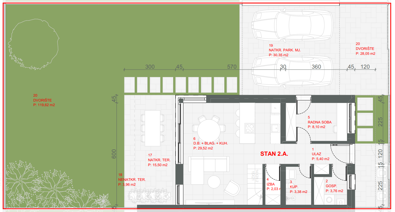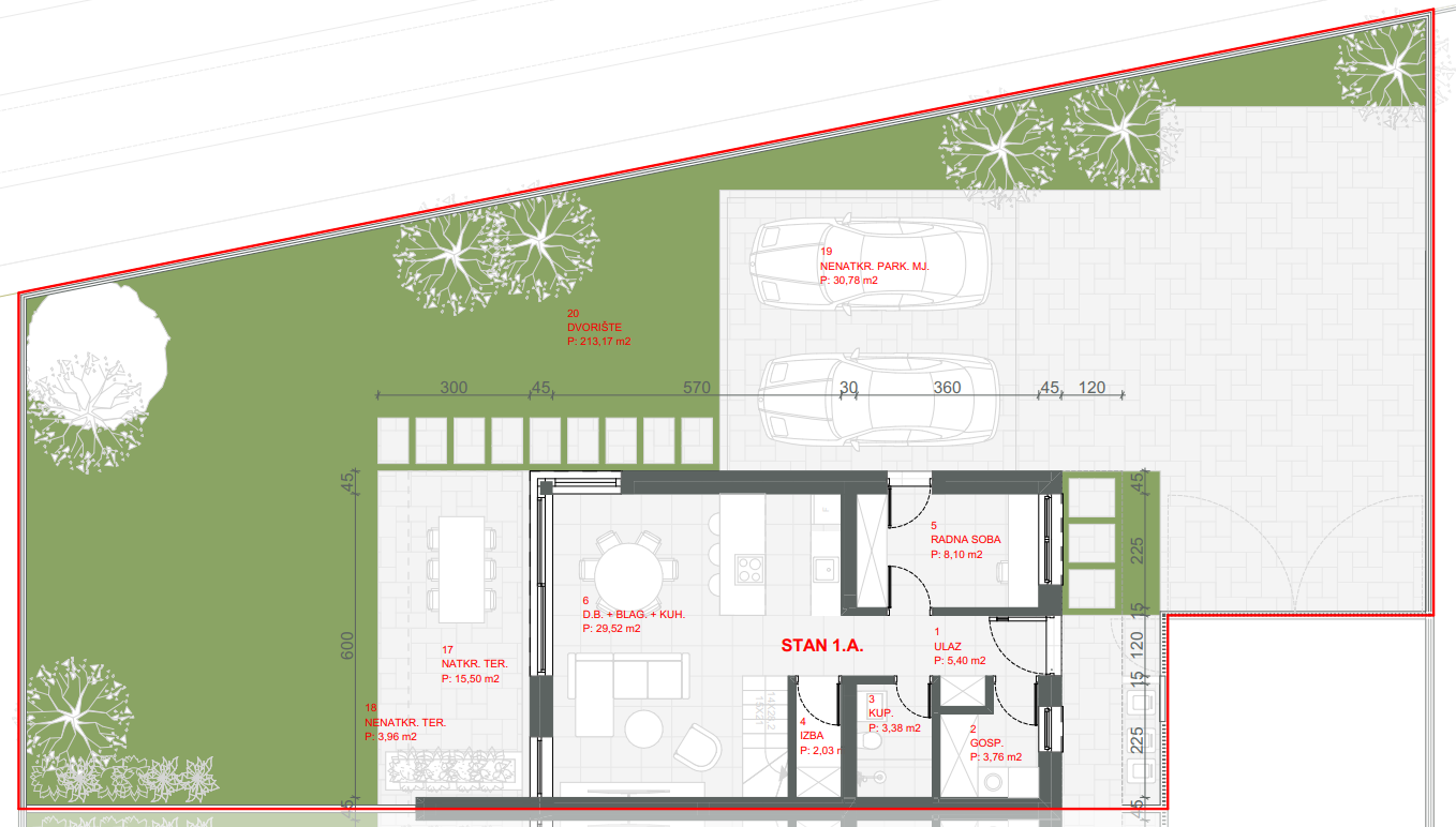 Kliknite na označeno područje stana za specifikacije i cijenu